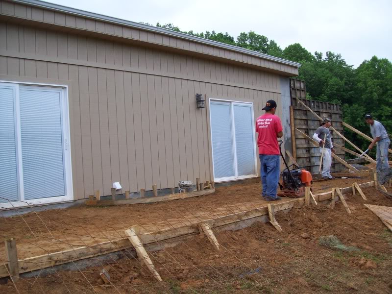 Yeah the concrete is finally poured and they are done. We are only a week behind of schedule, lol. They put plastic over it to protect it from the rain. Jim will be back in a couple of days to take the form boards off.